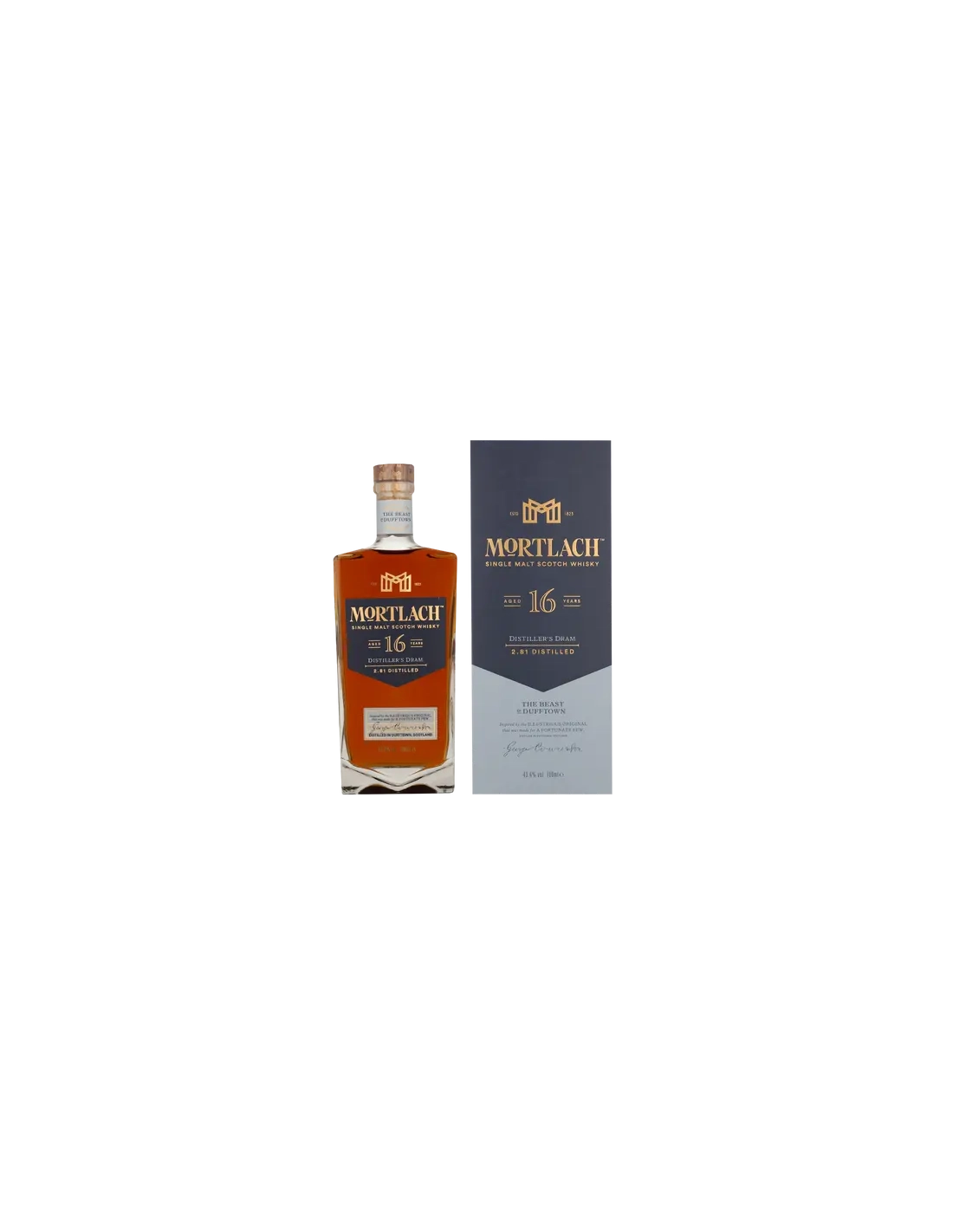Mortlach 16 YO – 0.7L + Cutie, Single Malt Speyside maturat in sherry: fructe uscate, toffee si condimente; textura bogata. Cutie inclusa. Disponibil pe BeiAcasa, livrare in Valcea.